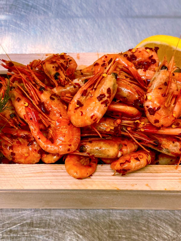 Rökta räkor med chili – med tydlig hetta och fyllig smak.
